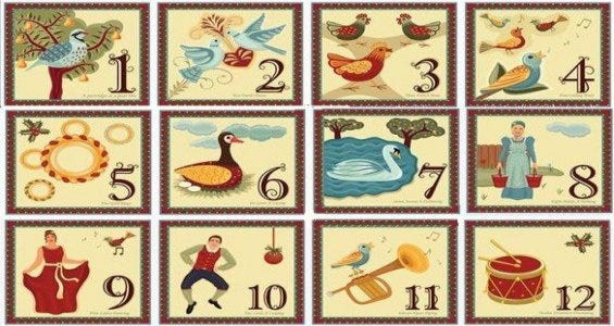 On the twelfth day of Christmas, my true love gave to me... twelve drummers drumming.