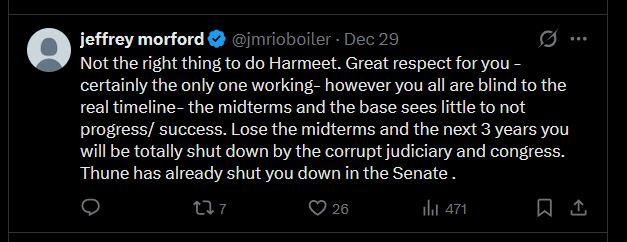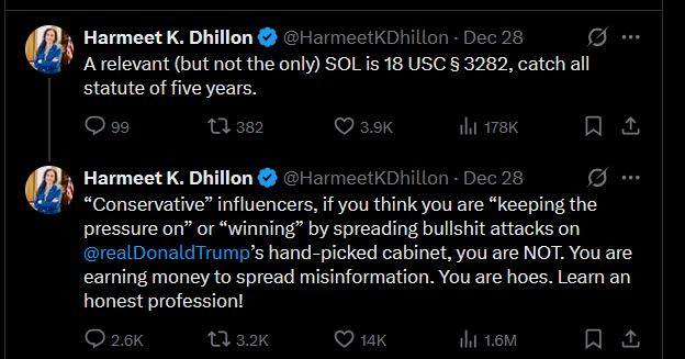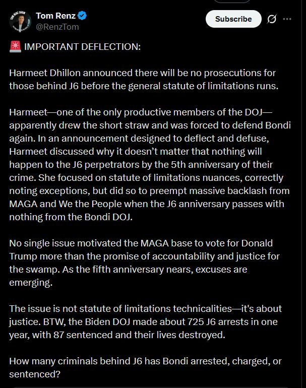 Activist attorney/podcaster Tom Renz was one of the people who attacked AG Pam Bondi in his post about the upcoming deadline and Dhillon’s remarks: