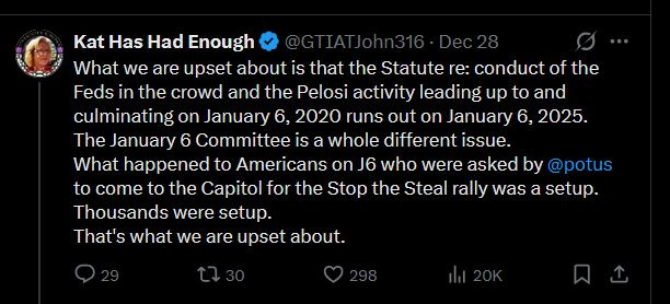 I fell for it. I’m not the only one. At first I thought that January 6, 2026 marks the end of a five-year statute of limitations (SOL). That the DOJ couldn’t then charge anyone after the J6 fiasco and fallout from 2021. That it would mean no justice for perpetrators of the entire weaponized House Select Committee production after they shaped an insurrection narrative out of what we now know was a carefully arranged ambush for American patriots who mostly wanted only to exercise their 1st Amendment rights that horrible day.